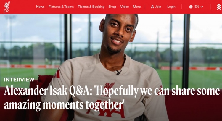 9月2日訊 利物浦已經(jīng)官宣引進紐卡中鋒伊薩克,后者也接受了俱樂部官網(wǎng)的問答采訪。