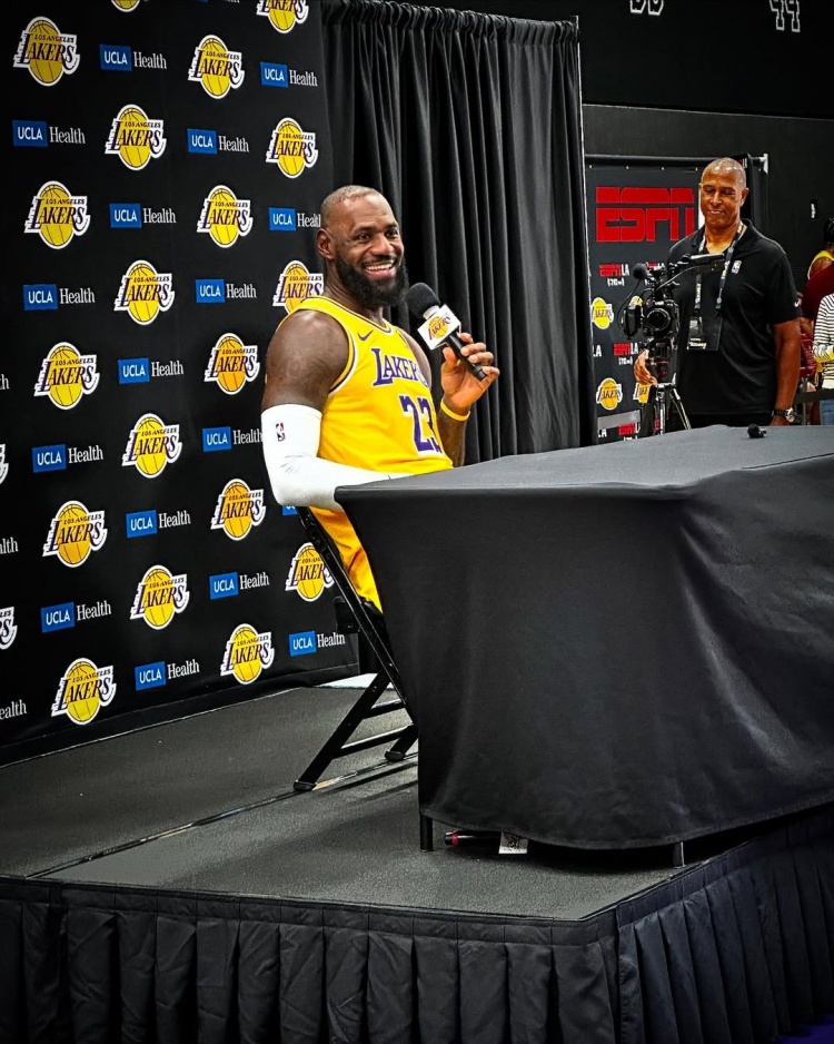 9月30日訊 今日,湖人前鋒詹姆斯出席了新賽季的媒體日,并接受媒體采訪。