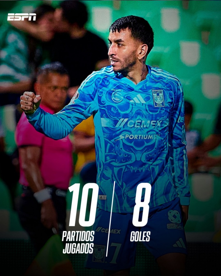 馬競出品??安赫爾-科雷亞加盟墨超老虎大學(xué)后,10場比賽打入8球