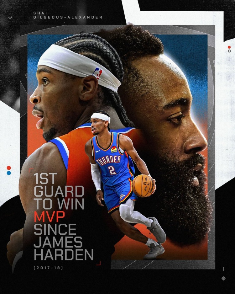 亞歷山大榮膺MVP 上一位拿下MVP的后衛(wèi)是17-18賽季的哈登??!