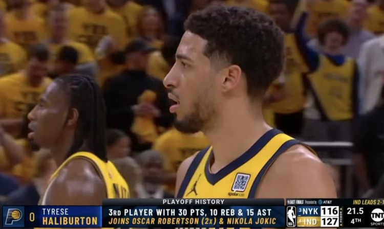 哈利伯頓季后賽至少30分10板15助 歷史第3人 比肩大O和約基奇