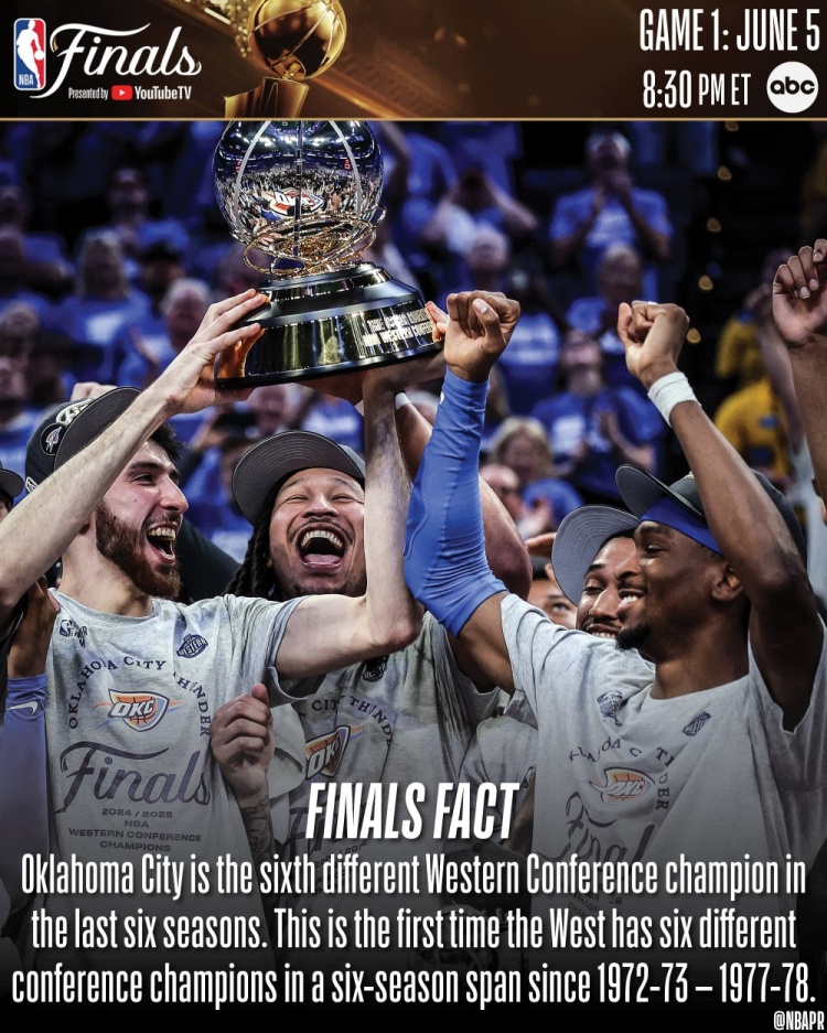 5月31日訊 本賽季雷霆奪得了西部冠軍,這是聯盟近6個賽季以來,所誕生的第6個西部冠軍。據統計,這是聯盟自1972-73...