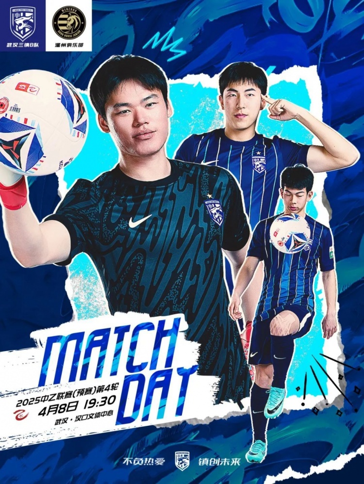 北京時間4月8日晚19:30,2025賽季中乙聯賽(預賽階段)第4輪,武漢三鎮B隊將坐鎮漢口文化體育中心迎戰溫州隊。4月...